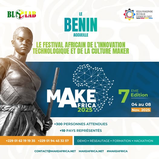Make Africa est un événement lancé en 2018 et qui rassemble tous les fablabs d’Afrique de l’Ouest, pour partager les bonnes pratiques, accélérer les projets collaboratifs, augmenter les échanges du réseau avec les secteurs gouvernementaux, académiques, économiques et solidaires, relever des défis lors de hackathons. Cette édition exceptionnelle se tenait du 4 au 8 novembre 2025 à Abomey-Calavi, commune limitrophe de Cotonou au Bénin, sur l’immense campus universitaire du pays.