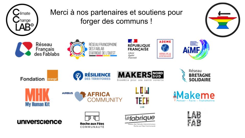 A ceux et celles qui oeuvrent maintenant pour permettre de nouveaux partenariats (comme Guenole du Low-tech Lab), aux élus locaux de la Communauté de Communes de la Roche aux Fées et aux équipes de La Canopée et de la Fabrique de la Roche aux Fées, ici en Bretagne. A ceux et celles qui nous ont offert des tribunes pour proposer notre vision (Open Space Makers, Makers Nord-Sud, La Tribune, MakeMe, FAB16, Octobermake, AIMF, la Casemate), aux bénévoles de l’association : MERCI.