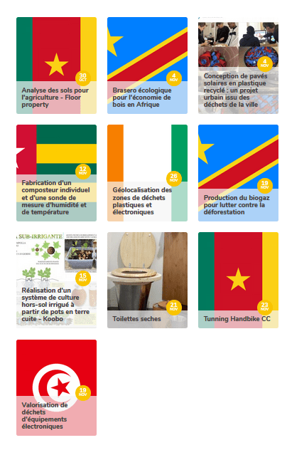 Toilettes sèches, biogaz DIY, brasero écologique à économie de bois, pavés solaires lumineux sur base de déchets plastiques, cartographie de la pollution par les personnes en situation de handicap, systèmes de culture lowtech, carto partie des déchets électroniques, transformation d’alimentations de PC en stations électriques : cette vague déferle actuellement depuis le Sénégal en passant par la République Démocratique du Congo, le Cameroun, le Togo, le Burkina, étendant ainsi notre projet sur l’Afrique centrale.