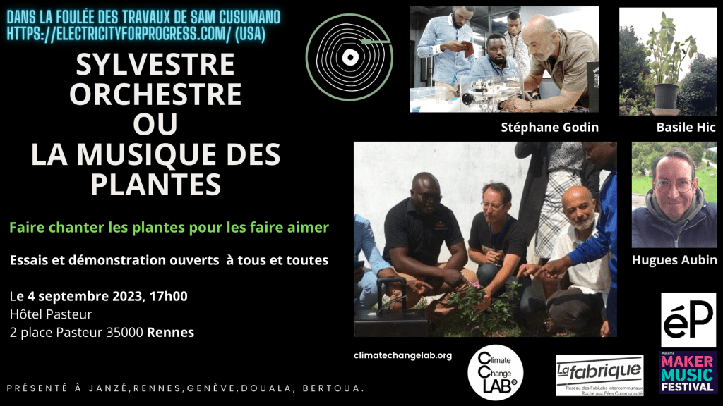 Remerciements : Merci à Sam Cusumano, Labomédia (les partageurs), Sabine Zadrozynski, Stéphane Godin, Make Me, le Maker Music Festival, le jardin partagé le 108, Nantes Maker Campus, le fablab de l’Orange Digital Center de Douala, la Maker Faire, la Belle déchette, la harpiste Taezi, Quentin Orhant, l’artiste ALI, Territoires, Laurent le Pors, Laurent Vandanjon, et toutes les bonnes volontés curieuses d’échanges autour du vivant.